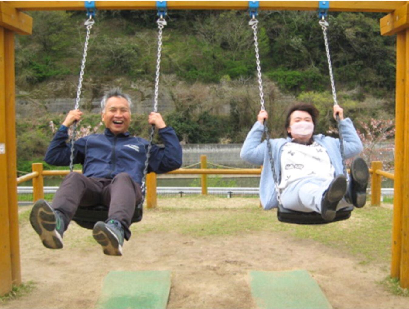 ブランコに乗って風を感じたり、四葉のクローバー🍀を見つけたりと綺麗な景色と